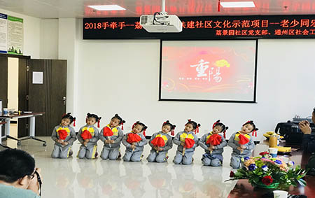 今天孩子们与老人相聚在荔景园社区,让孩子们体验与老人间浓浓的亲情,并用自己的行动来表达对爷爷奶奶的情感。意在让幼儿感受中华传统美德。能把享受“长辈的爱”的感情进行迁移,让孩子们去爱自己身边的每一位老人。同时社区也为老人们准备了美味的蛋糕,意在“尊老、敬老、爱老、助老”的风气。