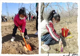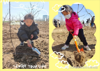 在老师们的带领下,孩子们来到了果园,认识了现有的果树,并了解到树木对人类的重要作用。来到适合种植的地方,在园艺工人的指导和帮助下小心翼翼的开始种植小树苗了。孩子们拿着自己的工具挖坑、栽种、填土、浇水……最后,孩子们用充满爱心和责任心的行动表达着他们对花草树木的爱护和祝福。